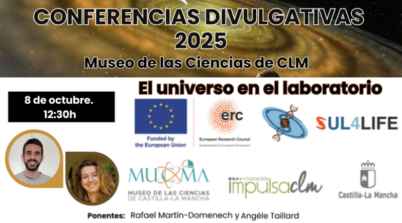 El Museo de las Ciencias de Castilla-La Mancha, fiel a su compromiso con la divulgación científica y la investigación de vanguardia, acoge el día 8 de octubre una nueva cita dentro del ciclo de Conferencias Divulgativas 2025, en colaboración con el proyecto europeo “The trail of sulphur: from molecular clouds to life (SUL4LIFE)”. La conferencia tendrán lugar en el salón de actos del museo, a las 12:30 horas, con entrada libre hasta completar aforo.