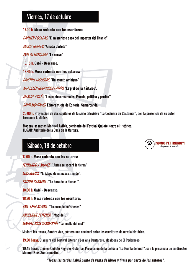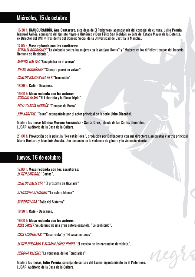 El Pedernoso acoge del 15 al 18 de octubre el festival literario Quijote Negro e Histórico con más de veinte escritores y múltiples actividades.
