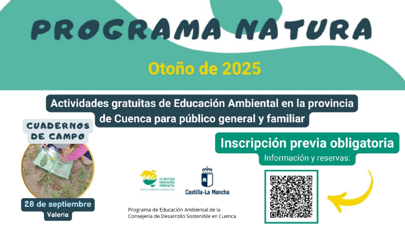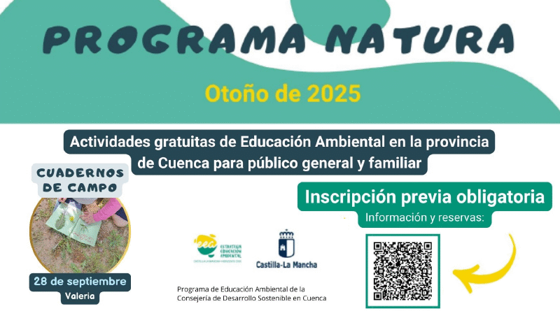 El Programa Natura prosigue su calendario de actividades de otoño 2025 en la provincia de Cuenca con la ruta “Cuadernos de campo”, que se celebrará el 28 de septiembre en Valeria. En esta experiencia interpretativa, los participantes recorrerán el entorno del río Gritos, explorando su flora, fauna y geología, y registrando sus observaciones en cuadernos preparados para la ocasión. La jornada se completará con una reflexión sobre la histórica relación del ser humano con este enclave natural, tejiendo un puente entre conocimiento y memoria ancestral.