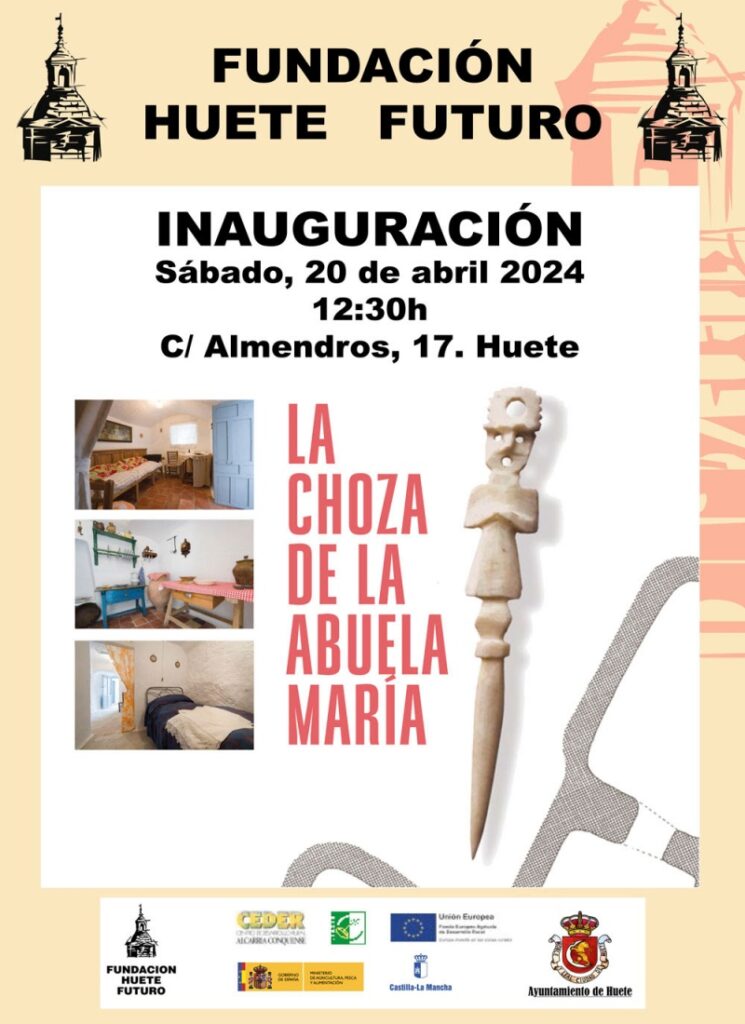 Informamos que la Fundación Huete Futuro celebrará la inauguración de la Restauración, Rehabilitación y Museografía de la »Choza». Situada en la calle Almendros nº 17 de Huete el próximo sábado 20 de abril a las 12:30 horas.