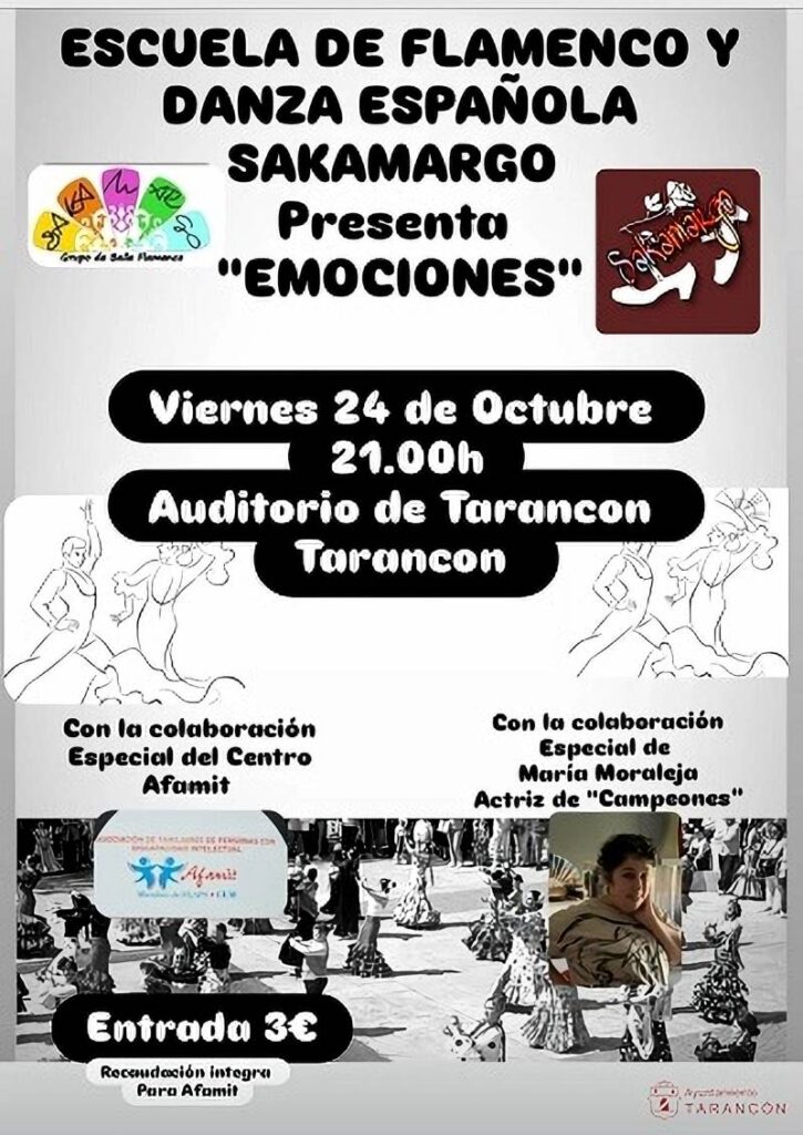 El próximo viernes 24 de octubre de 2025 a las 21:00 horas, el Auditorio de Tarancón acogerá el espectáculo “Emociones”, una gala de flamenco y danza española organizada por la Escuela Sakamargo. La cita, concebida como una celebración del arte y la sensibilidad, tiene además un fin solidario: la recaudación íntegra se destinará a la Asociación Afamit, dedicada al apoyo y la inclusión de personas con discapacidad intelectual.