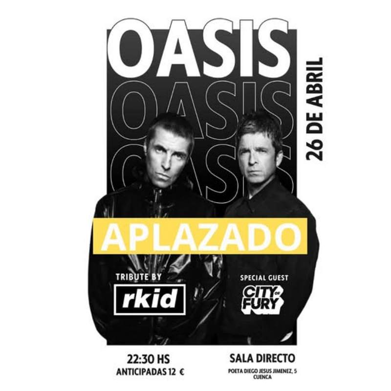 Aplazado el concierto de RKid y City Of Fury en Cuenca: una noche con tributo a ‘Oasis’ e indie rock en la Sala Directo