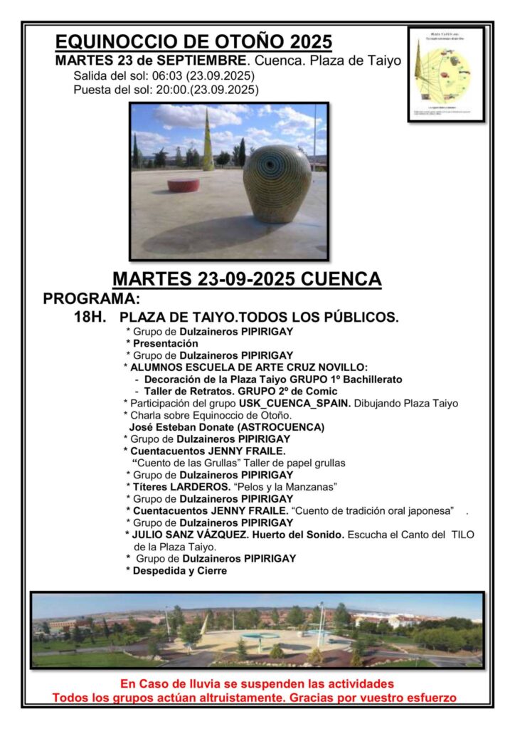 Equinoccio de Otoño 2025 en la Plaza de Taiyo de Cuenca: programa completo para el martes 23 de septiembre