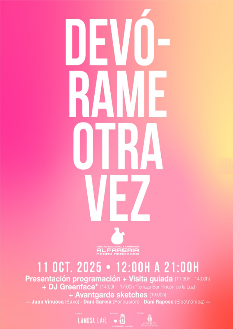 Verónica Moreno ha sido la encargada de referirse al contenido de las propuestas, señalando que esta nueva temporada se inicia bajo el eslogan ‘Devórame otra vez’ y que este sábado “será un día lleno de contenido que nos gustaría compartir con toda la ciudadanía”. Ha hecho asimismo mención a la visita guiada posterior a la presentación, exponiendo el colectivo Lamosa Lab que se hará un recorrido por la casa-museo-taller de Pedro Mercedes en el que “es posible respirar la atmósfera singular del lugar que el maestro convirtió, durante décadas, en santuario, refugio espiritual y laboratorio creativo”.