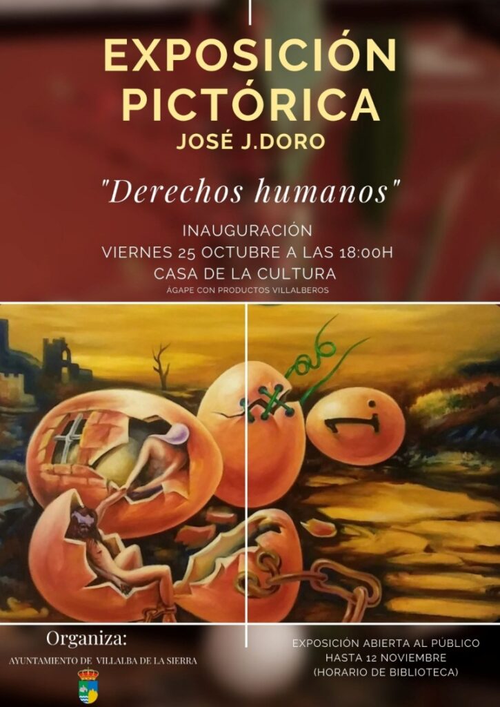 La Casa de la Cultura de Villalba de la Sierra acogerá a partir del próximo viernes 25 de octubre la inauguración de la exposición pictórica del artista José J. Doro, titulada «Derechos humanos». La muestra, compuesta por una serie de óleos sobre lienzo, conmemora el 75 aniversario de la redacción y proclamación de la Declaración Universal de los Derechos Humanos.