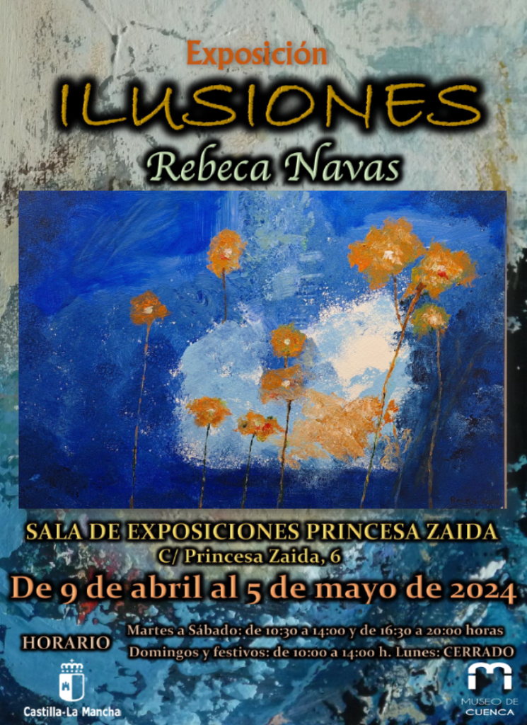 El Museo de Cuenca inaugura el próximo martes, día 9 de abril de 2024 a las 19:00 horas, en la Sala de Exposiciones temporales Princesa Zaida del Museo de Cuenca (C/ Princesa Zaida, 6, Cuenca) la exposición »ILUSIONES’. Una muestra de la obra de Rebeca Navas Muñoz, artista con una técnica de pintura abstracta de gran color y luz.