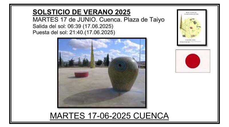 La Plaza de Taiyo (Parque de los Príncipes) de la capital conquense acogerá el próximo lunes 17 de junio la Fiesta del Solsticio de Verano, una actividad abierta al público con la que se quiere dar la bienvenida al verano. El evento, de carácter gratuito y familiar, comenzará a las 20:00 horas y reunirá música tradicional, astronomía, cuentacuentos, arte y participación ciudadana en un entorno emblemático.