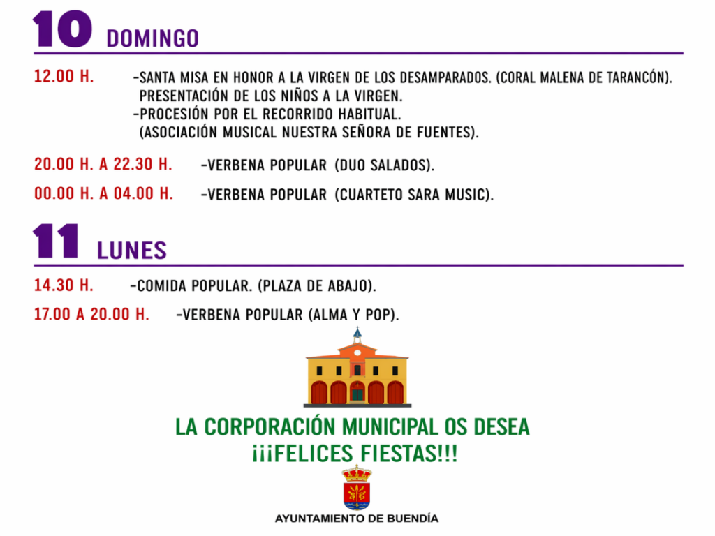 El programa continuará el lunes 11 de mayo con una comida popular y nuevas actividades festivas, cerrando así unos días marcados por el reencuentro, la devoción y el ambiente festivo que caracteriza a Buendía.