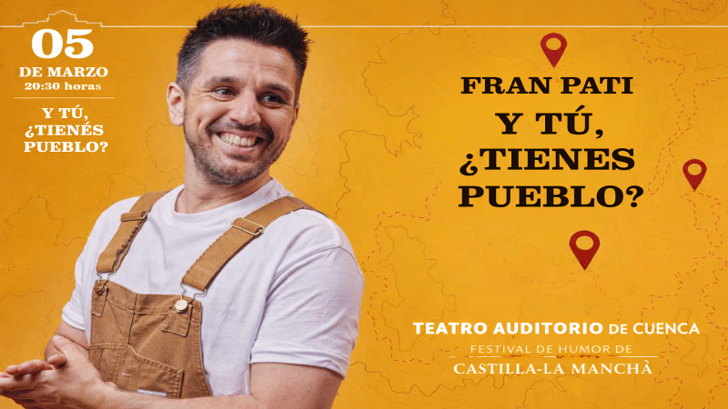 El Festival de Humor de Castilla-La Mancha trae al Teatro Auditorio José Luis Perales de Cuenca el espectáculo “Y tú, ¿tienes pueblo?” de Fran Pati, un monólogo que celebra sus diez años de trayectoria artística con una propuesta cargada de humor cercano, identidad y memoria rural.