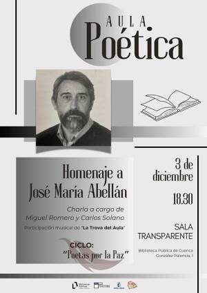 La Biblioteca Pública del Estado en Cuenca acogerá el próximo miércoles 3 de diciembre, a las 18:30 horas, un emotivo acto dentro del ciclo “Poetas por la Paz”: un homenaje a José María Abellán, poeta, docente y una de las voces destacadas en los inicios del Aula Poética.