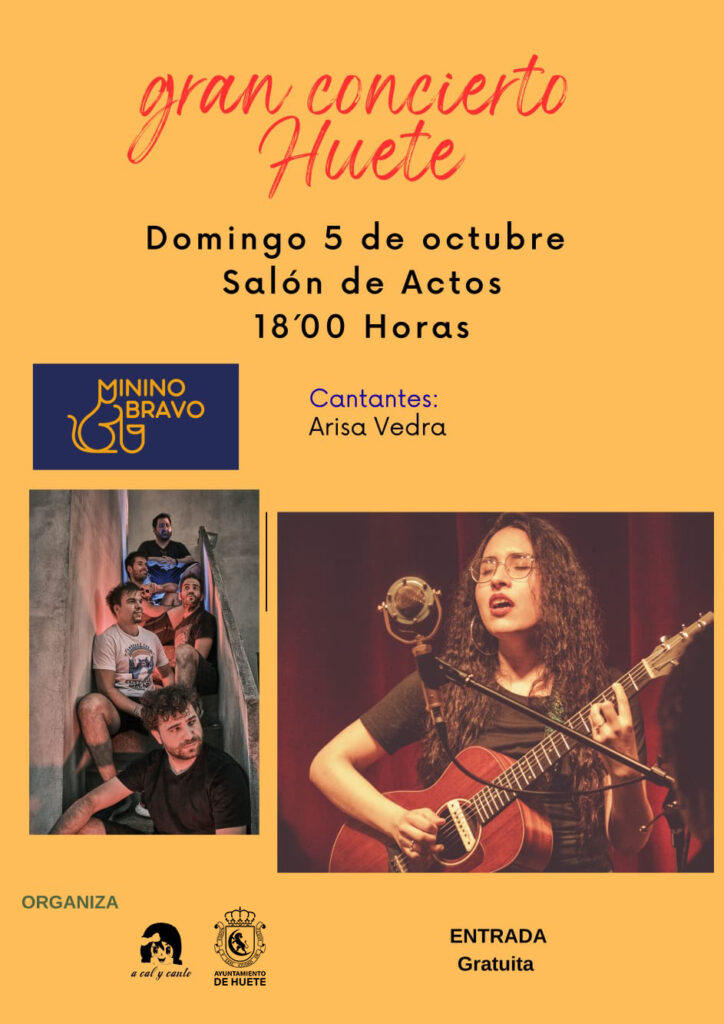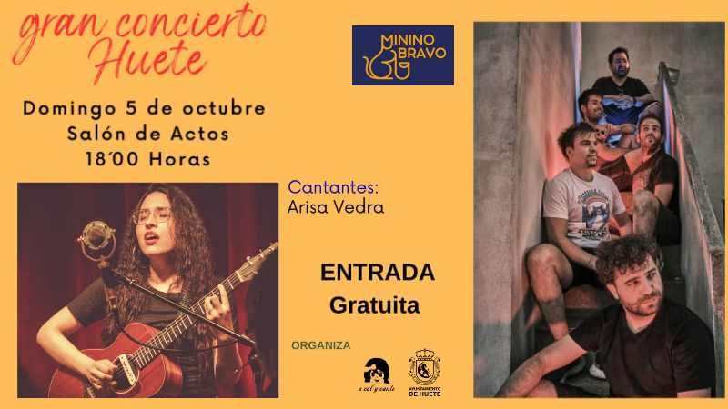 El 5 de octubre Huete celebra un concierto gratuito de Mínimo Bravo & Arisa Vedra en el Salón de Actos del Ayuntamiento a las 18:00 h.
