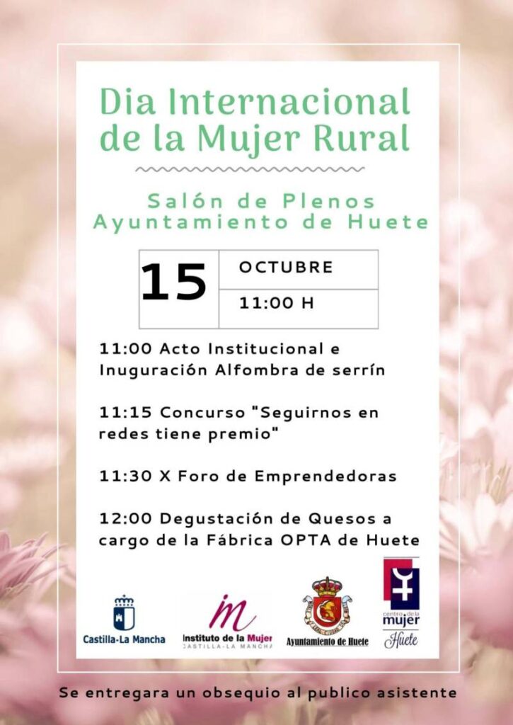 El martes 15 de octubre, el Salón de Plenos del Ayuntamiento de Huete será escenario de la conmemoración del Día Internacional de las Mujeres Rurales, una jornada dedicada a reconocer la labor, el emprendimiento y la contribución social y económica de las mujeres en el ámbito rural.