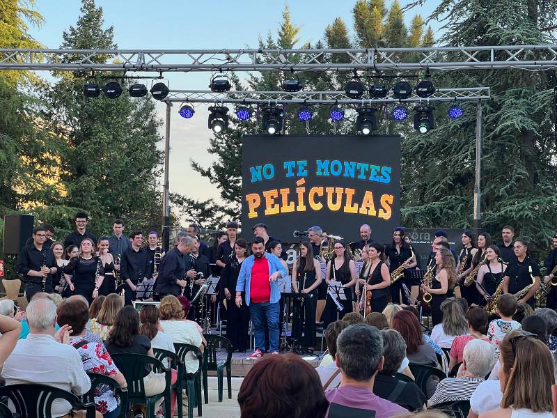El festival Estival Cuenca 25 inició su programación con una noche de humor, música de cine y talento universitario en el recientemente terminado Ágora del campus de la Universidad de Castilla-La Mancha en Cuenca. El espectáculo «No te montes películas 25», protagonizado por el humorista y clarinetista Jesús Arenas, acompañado por la Banda Sinfónica de la UCLM dirigida por Miriam Castellanos, ofreció un arranque vibrante, festivo y cargado de complicidad con el público.