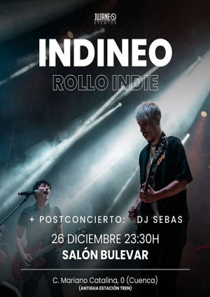 Indineo ofrece un concierto indie gratuito en Cuenca el 26 de diciembre en el Salón Bulevar, con DJ Sebas en sesión postconcierto