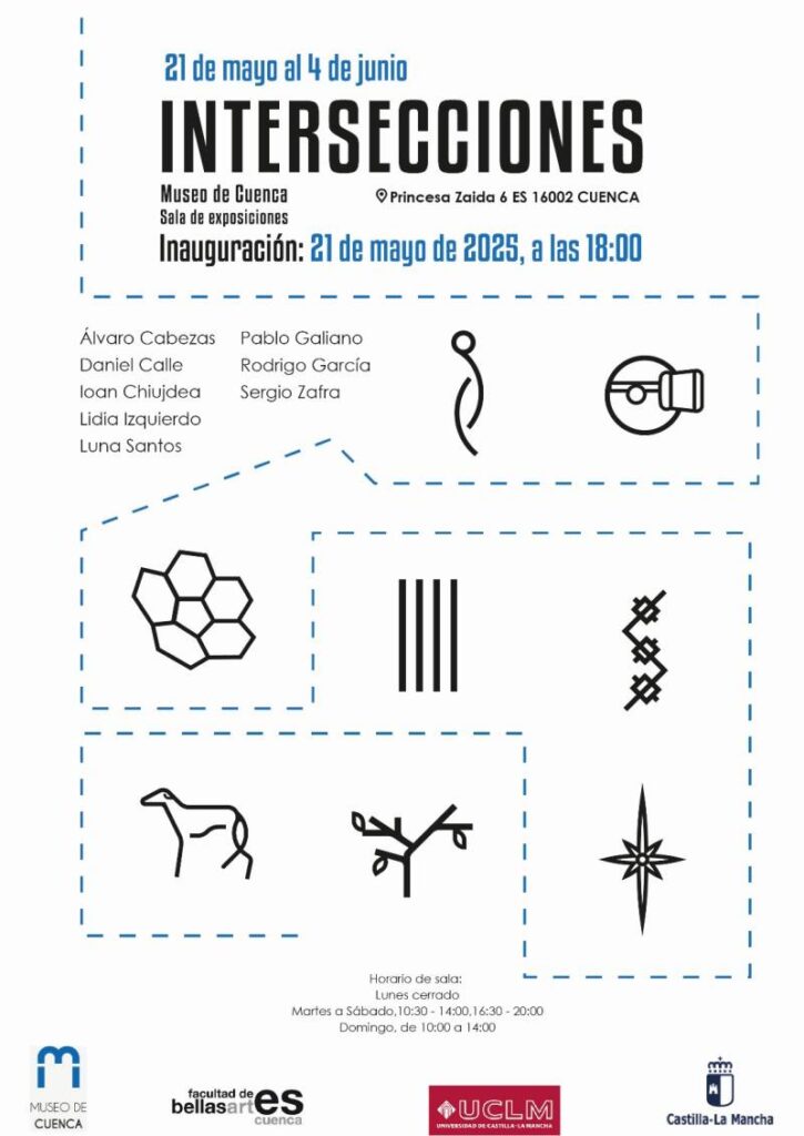 Del 21 de mayo al 4 de junio de 2025, la Sala Princesa Zaida de Cuenca (C/ Princesa Zaida, 6) acoge INTERSECCIONES, una exposición colectiva que reúne las obras de ocho estudiantes de la Facultad de Bellas Artes de la UCLM. La muestra se configura como un espacio simbiótico e interdisciplinar que articula diversas propuestas artísticas con una fuerte carga crítica, poética y conceptual.
