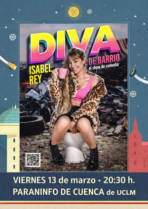 La humorista Isabel Rey actuará en Cuenca el próximo viernes 13 de marzo a las 20:30 horas con su espectáculo “Diva de barrio”, un show de comedia de 90 minutos de duración que tendrá lugar en el Paraninfo de la Universidad de Castilla-La Mancha. Una chica sin filtros que derrocha naturalidad, con un humor ácido y espontáneo, donde hay de todo menos postureo, un viaje en el tiempo nostálgico y barrialmente divertido.