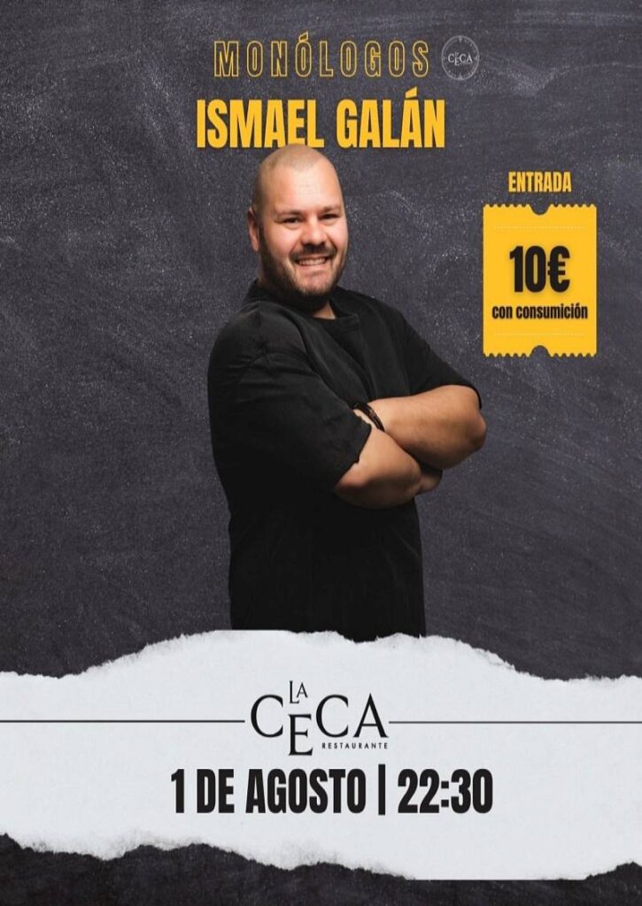 Las risas vuelven a La Ceca este viernes 1 de agosto a las 22:30 h con la actuación del cómico murciano Ismael Galán, una de las voces más reconocidas y provocadoras del humor actual. Su nuevo espectáculo promete una noche sin filtros, irreverente y repleta de carcajadas, en lo que será una de las últimas citas del circuito de monólogos de este verano en Cuenca.