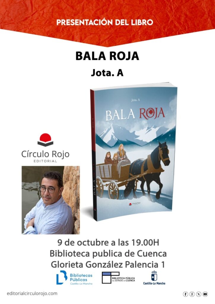José Antonio Cebrián López , ‘Jota. A’, seudónimo que utiliza para publicar, nos presenta el miércoles 9 de octubre a las 19.00 horas, en la Sala Begoña Marlasca de la Biblioteca Pública del Estado en Cuenca »Fermín Caballero», su segunda novela titulada “Bala Roja”. Un libro basado en hechos reales sobre una familia de origen rumano, ayudado por un nativo de la tierra.