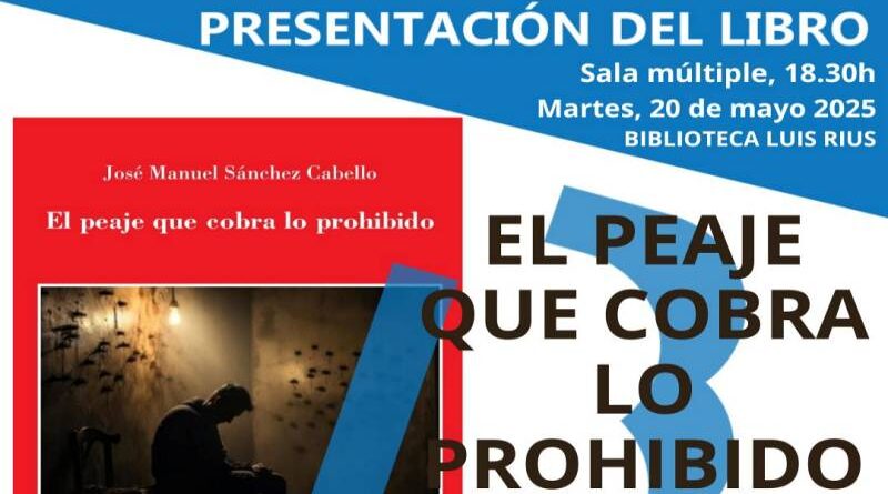 El 20 de mayo, José Manuel Sánchez Cabello presenta en Tarancón El peaje que cobra lo prohibido, novela poética cargada de erotismo y sensibilidad.
