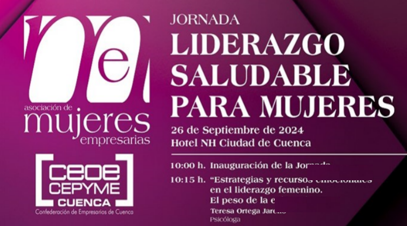 La Asociación Provincial de Mujeres Empresarias de Cuenca, AMEP y CEOE CEPYME Cuenca, celebran el próximo jueves 26 de septiembre la jornada ‘Liderazgo saludable para mujeres’ en el Hotel NH de Cuenca.