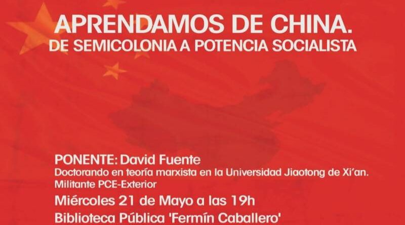 El próximo miércoles 21 de mayo a las 19:00 h, la Biblioteca Pública del Estado en Cuenca ‘Fermín Caballero’ acoge la conferencia “Aprendamos de China: de semicolonia a potencia socialista”, impartida por el investigador y divulgador David Fuentes.