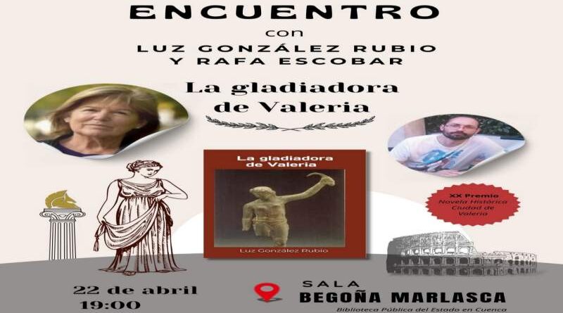La Biblioteca Pública del Estado en Cuenca acoge, el martes 22 de abril de 2025 a las 19.00 horas, la presentación de La gladiadora de Valeria, una novela de ficción histórica escrita por Luz González Rubio y Rafa Escobar, que traslada al lector a la época del Imperio romano para dar voz a una protagonista tan insólita como poderosa: una joven gladiadora en tierras de Hispania.