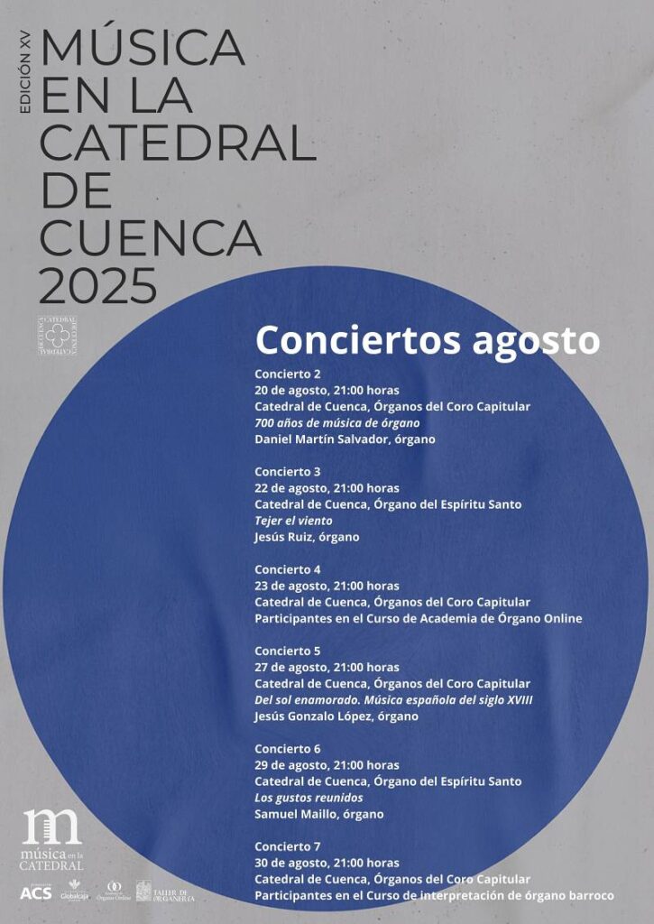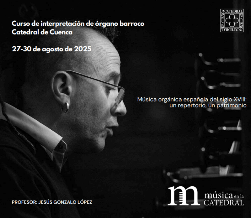 El 29 de agosto a las 21:00 horas, la Catedral de Cuenca será escenario del Concierto 6 del ciclo Música en la Catedral, bajo el título “Los gustos reunidos”, dentro del curso de interpretación de órgano barroco que se celebra del 27 al 30 de agosto de 2025.