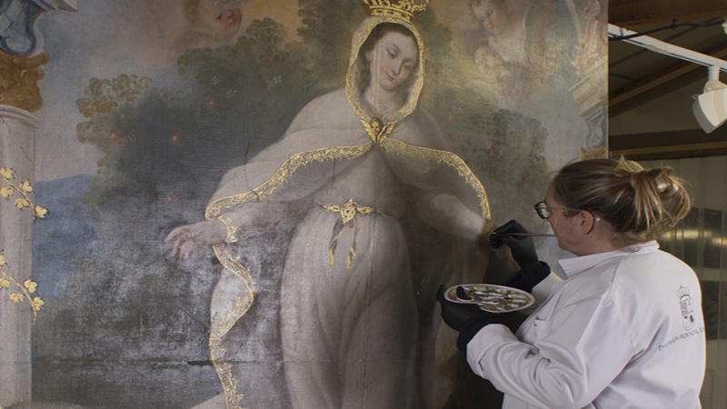 La diputada de Patrimonio, Mayte Megía, ha destacado la importancia de este servicio provincial que permite actuar en estos recursos patrimoniales de gran calidad que, además, tienen un gran valor sentimental para los vecinos y vecinas de nuestros pueblos. Estos trabajos han consistido en repintar zonas del cuadro que estaban muy deterioradas, así como eliminar repintados anteriores y recuperar los bordes, todo ello ha hecho que el cuadro haya ampliado sus extensiones.