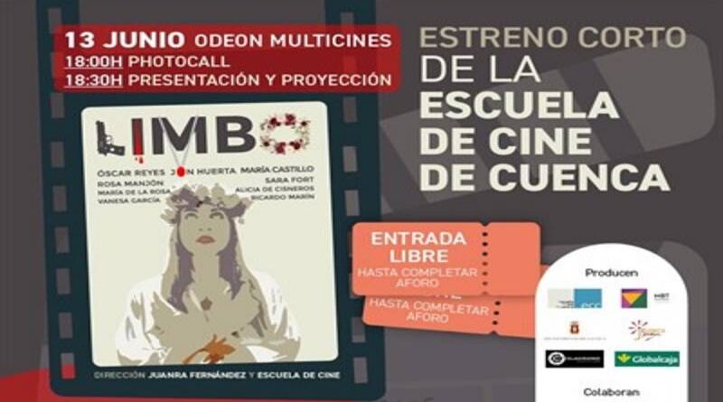 La Escuela Municipal de Cine de Cuenca presenta este viernes 13 de junio su cortometraje ‘Limbo’, realizado en colaboración con el espacio escénico MBT de Madrid, con el que inicia una colaboración mutua. Será en los Cines Odeón del Centro Comercial ‘El Mirador’, en una sesión que arrancará a las 18:00 horas con un photocall y continuará a las 18:30 horas con la presentación y proyección del corto, siendo la entrada libre hasta completar aforo.