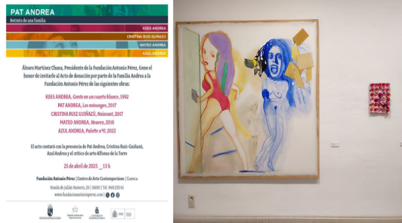 Las obras donadas estuvieron en una exposición realizada en 2023 en las sedes de la Fundación Antonio Pérez en Cuenca (Centro de Arte Contemporáneo) y en San Clemente (Museo de Obra Gráfica), que se llamó “Pat Andrea. Retrato de una familia” y que comisarió Alfonso de la Torre.