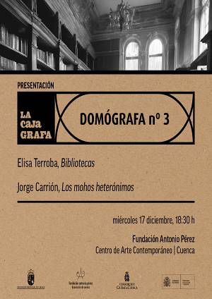 La Fundación Antonio Pérez acoge, el próximo miércoles 17 de diciembre a las 18.30 h, la presentación del número 3 de la colección Domógrafas, editada por La Caja Grafa, una cita que invita a acercarse al arte de la edición y del grabado, desde un formato singular que combina obra gráfica y pensamiento contemporáneo.