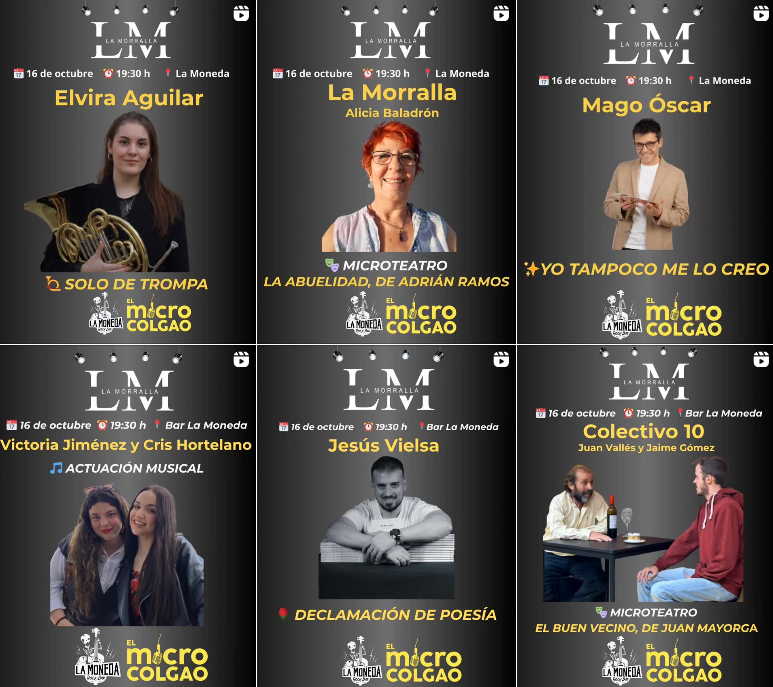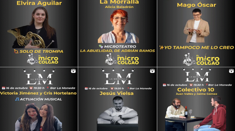 La Asociación Cultural La Morralla inaugura hoy, jueves 16 de octubre, a las 19:30 horas, El Micro Colgao, un nuevo espacio escénico mensual en La Moneda (Cuenca) que unirá poesía, microteatro, música, monólogos y magia. El proyecto nace con la vocación de convertirse en una cita imprescindible en el calendario cultural conquense, ofreciendo un foro libre y participativo donde artistas y público se encuentren a través de la palabra, la emoción y la creatividad compartida.