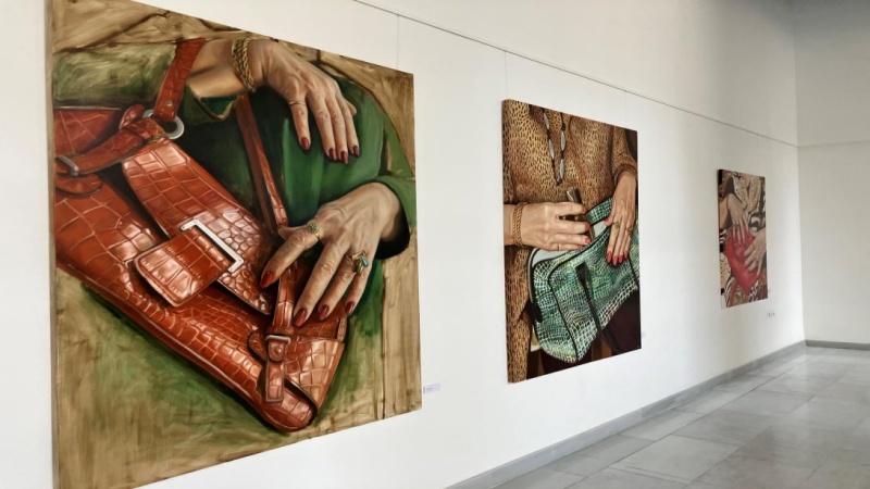 La mano de una mujer fumándose un cigarro en su silla de plástico con sus anillos, la elección de unos tacones, las manos de una señora cogiendo su bolso e incluso una oca en un salón son, entre otras, algunas de las escenas que muestran estás pinturas donde la cotidianidad, la elegancia y lo kitsch van de la mano.