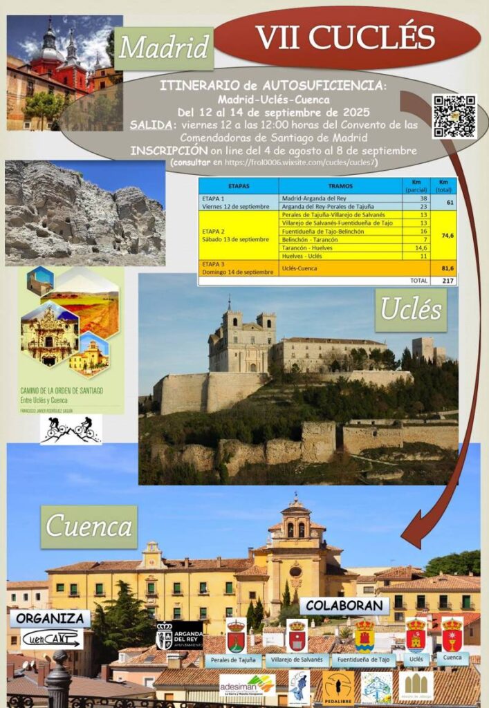 Se trata de la VII CUCLÉS, una edición basada en el libro “Camino de la Orden de Santiago. Entre Uclés y Cuenca” editado en 2019 que viene a recordar el camino que seguían los caballeros de la Orden de Santiago desde el momento que les fue concedido el priorato de la Orden en el Monasterio, Hospital y Fortaleza de Uclés. Fue en 1174 y tres años después, en 1177 se conquistó Cuenca. Significa que el camino fue recorrido a menudo por los caballeros y este camino se convierte hoy día en un atractivo y homenaje.