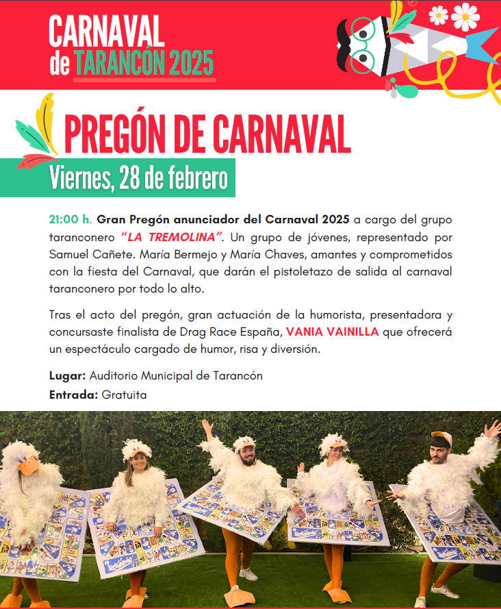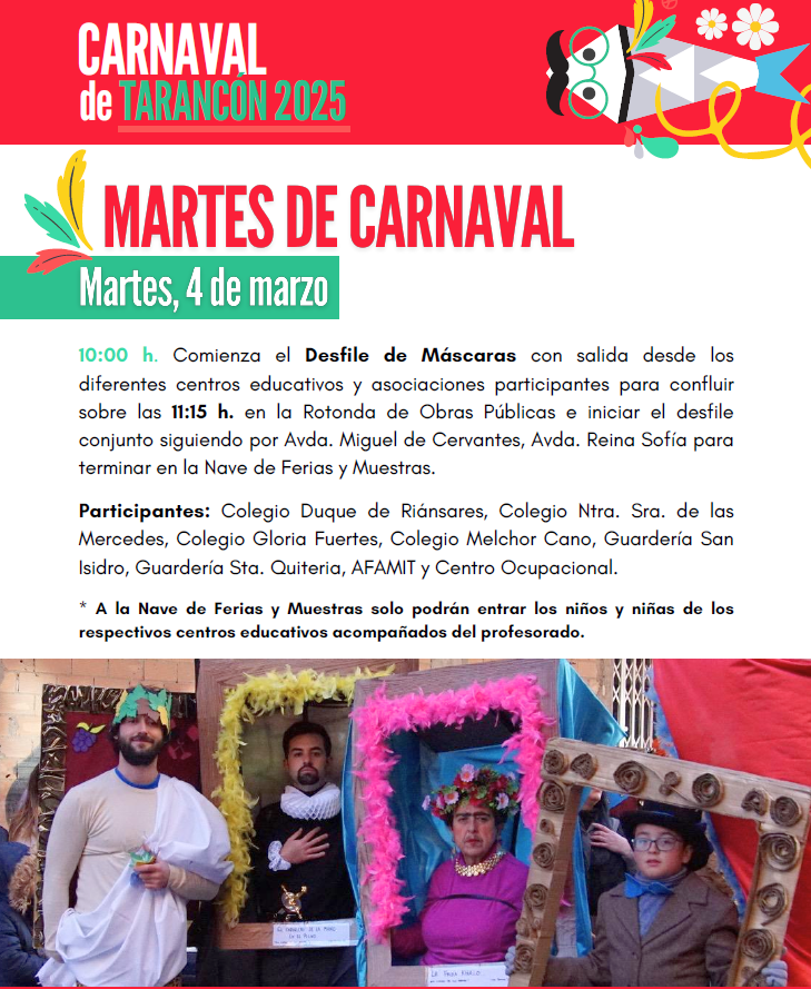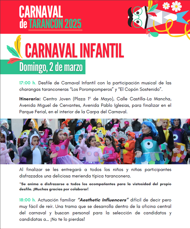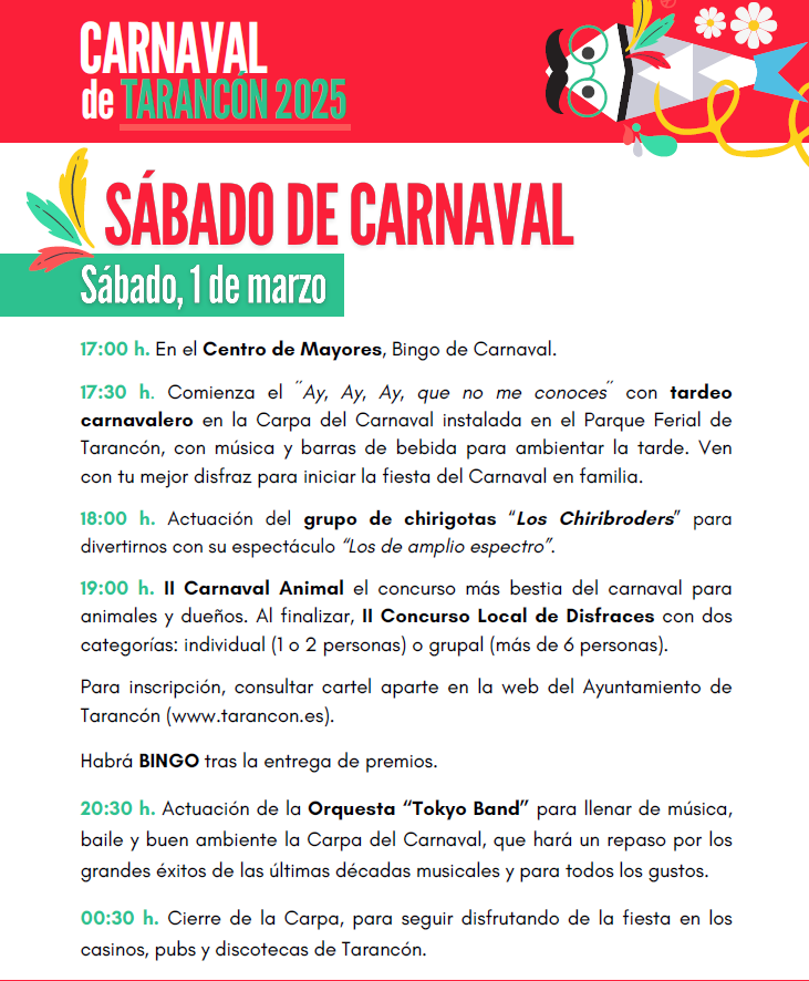 Llega a Tarancón el Carnaval 2025 con más de 20 actividades del 28 de febrero al 9 de marzo. ¡Consulta ya la programación!