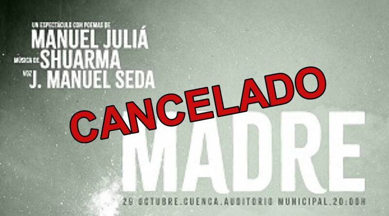 El Auditorio de Cuenca informa en sus redes sociales la cancelación de Madre, espectáculo solidario de Manuel Juliá y Shuarma el 29 de octubre. Próximamente se anunciarán nuevas fechas