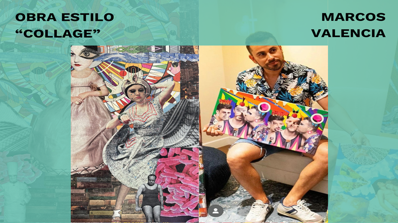 Marcos Valencia, nacido en Cuenca en 1981, ha desarrollado una prolífica carrera artística que lo ha llevado a exponer en diversas ciudades de España y Portugal, como Madrid, Barcelona, Valencia, y Lisboa. Con más de dos décadas de experiencia, ha encontrado en el collage su forma de expresión más auténtica. Su técnica, que consiste en ensamblar recortes de revistas, carteles y otros materiales impresos, le permite crear composiciones que no solo destacan por su colorido, sino también por las historias que cada obra narra.