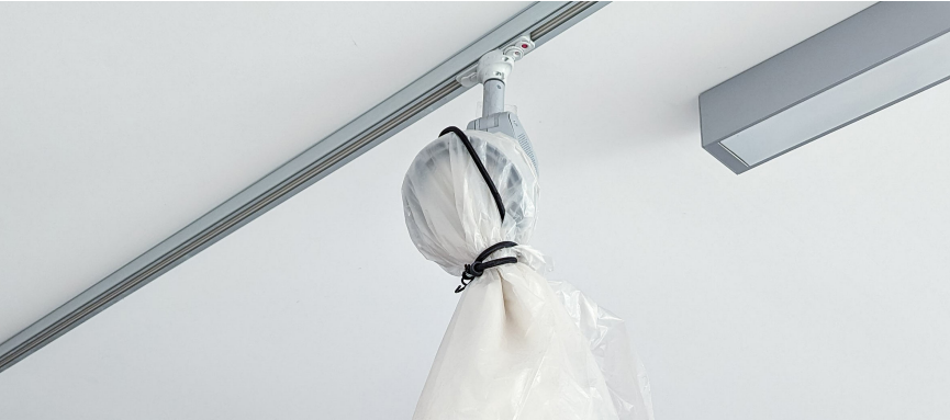 La obra se articula en torno a la transformación de los focos de iluminación, envueltos en un material destinado originalmente a proteger. Este gesto aparentemente simple introduce una tensión conceptual: aquello que protege también limita, y lo que ilumina se ve condicionado por una nueva materialidad.