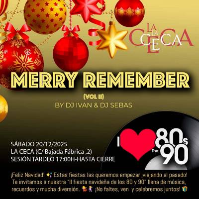 Los amantes de la música de las décadas de los 80 y 90 tienen una cita imprescindible este sábado con la segunda edición de la fiesta navideña “Merry Remember (Vol. II)” en La Ceca (Calle Bajada Fábrica, 2). Este espacio único, situado junto al río, se transformará en un escenario lleno de nostalgia, diversión y grandes recuerdos, en una jornada que promete ambiente festivo y mucho ritmo.