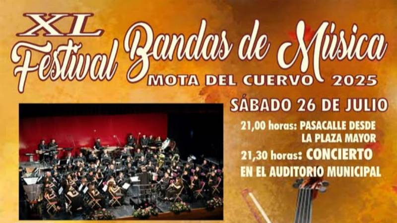 Mota del Cuervo se convierte este sábado 26 de julio en el epicentro de la música con la celebración del XL Festival de Bandas de Música, una cita ineludible que rinde homenaje a la tradición y al talento musical de nuestra tierra.