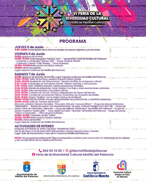 Disfruta de la VI Feria de la Diversidad Cultural en Motilla del Palancar el 6 y 7 de junio con entrada gratuita y actividades multiculturales