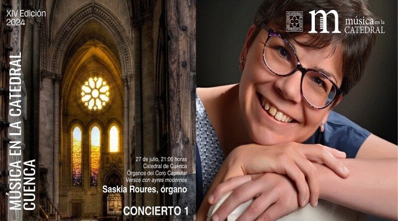 La XIV Edición 2024 de ‘Música en la Catedral’ se inicia hoy, sábado 27 de julio a las 21:00 horas, con la actuación en la Basílica conquense de la magnífica intérprete Saskia Roures Navarro que nos trae un programa titulado »Versos con ayres modernos». Un concierto en el que une la tradición litúrgica de los versos con las nuevas tendencias estéticas que entraron a formar parte del repertorio organístico en el s. XIX, de la mano de compositores como Ledesma, Anglés o Lidón