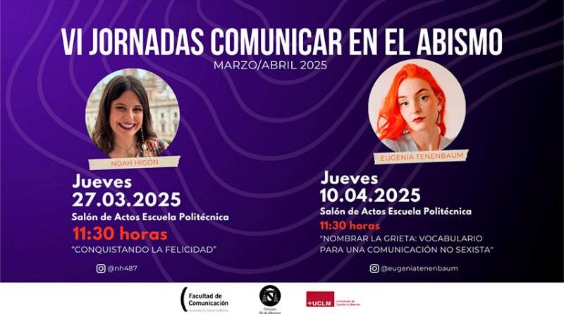 La sexta edición de las jornadas “Comunicar en el abismo” congregan a Noah Higón y Eugenia Tenenbaum, divulgadoras en redes sociales de enfermedades raras y de arte y feminismo, respectivamente. La Facultad de Comunicación desarrolla esta actividad el 27 de marzo y el 10 de abril a las 11:30 horas en el salón de actos de la Escuela Politécnica. Además, se proyectará el documental «Noah» en los Odeón multicines de Cuenca.
