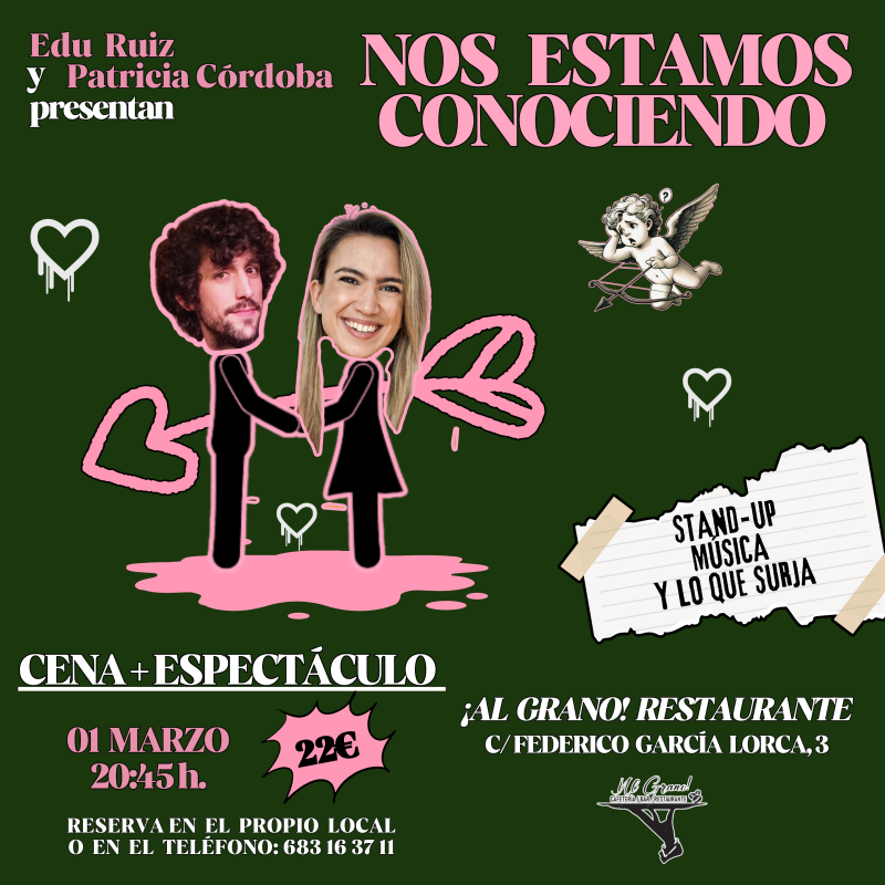 ‘Nos estamos conociendo’ con Patricia Córdoba y Edu Ruiz, cena + espectáculo en ¡Al Grano! Restaurante