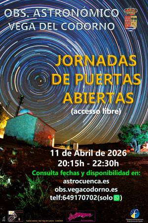 El Observatorio Astronómico de Vega del Codorno inicia una nueva etapa con la puesta en marcha de actividades dirigidas al público general, consolidándose como uno de los espacios más singulares para la divulgación científica en la provincia. La primera de estas sesiones tendrá lugar el 11 de abril de 2026, siempre condicionada por la meteorología, en una experiencia diseñada para acercar el universo a todos los públicos.