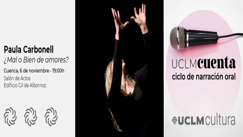 El próximo 6 de noviembre a las 19:00 horas, el Salón de Actos del Edificio Gil de Albornoz acogerá una nueva cita del ciclo de narración oral “UCLM Cuenta Cuenca”, que en esta ocasión contará con la reconocida narradora Paula Carbonell y su propuesta titulada “¿Mal o bien de amores?”.