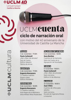 “UCLM Cuenta Cuenca” es una iniciativa impulsada por el Servicio de Cultura de la Universidad de Castilla-La Mancha (UCLM) que busca acercar la narración oral contemporánea a la comunidad universitaria y al público general, apostando por la diversidad, la igualdad y la palabra compartida.