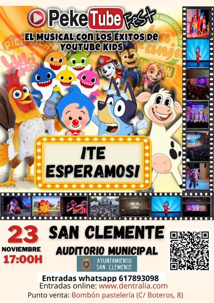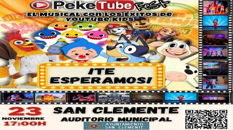 El próximo 23 de noviembre de 2025 a las 17:00 horas, el Auditorio Municipal de San Clemente levantará el telón para presentar “Peke Tube, el musical con los éxitos de YouTube Kids”, un espectacular musical que hará las delicias de grandes y pequeños. El público podrá disfrutar de un recorrido inolvidable por las canciones más virales de YouTube que han marcado generaciones.