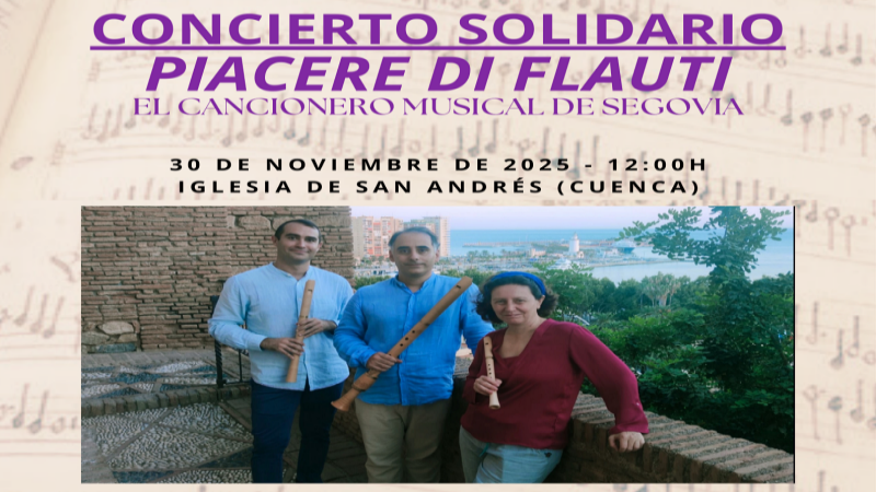 Concierto solidario de Piacere di Flauti el 30 de noviembre en San Andrés (Cuenca), a beneficio de AFYEDALCU, con música del Cancionero de Segovia.