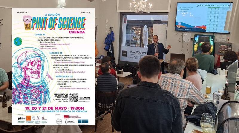 En Cuenca, Pint of Science se celebrará en la cervecería La Churrería del Tío Santos (calle Alonso Chirino, 4) a partir de las 19:30 horas, con un total de cuatro charlas científicas que cubrirán distintas temáticas, desde la accesibilidad e inclusión, planificación urbana, ciberbullying en las redes sociales y la conexión naturaleza-humano-tecnología.